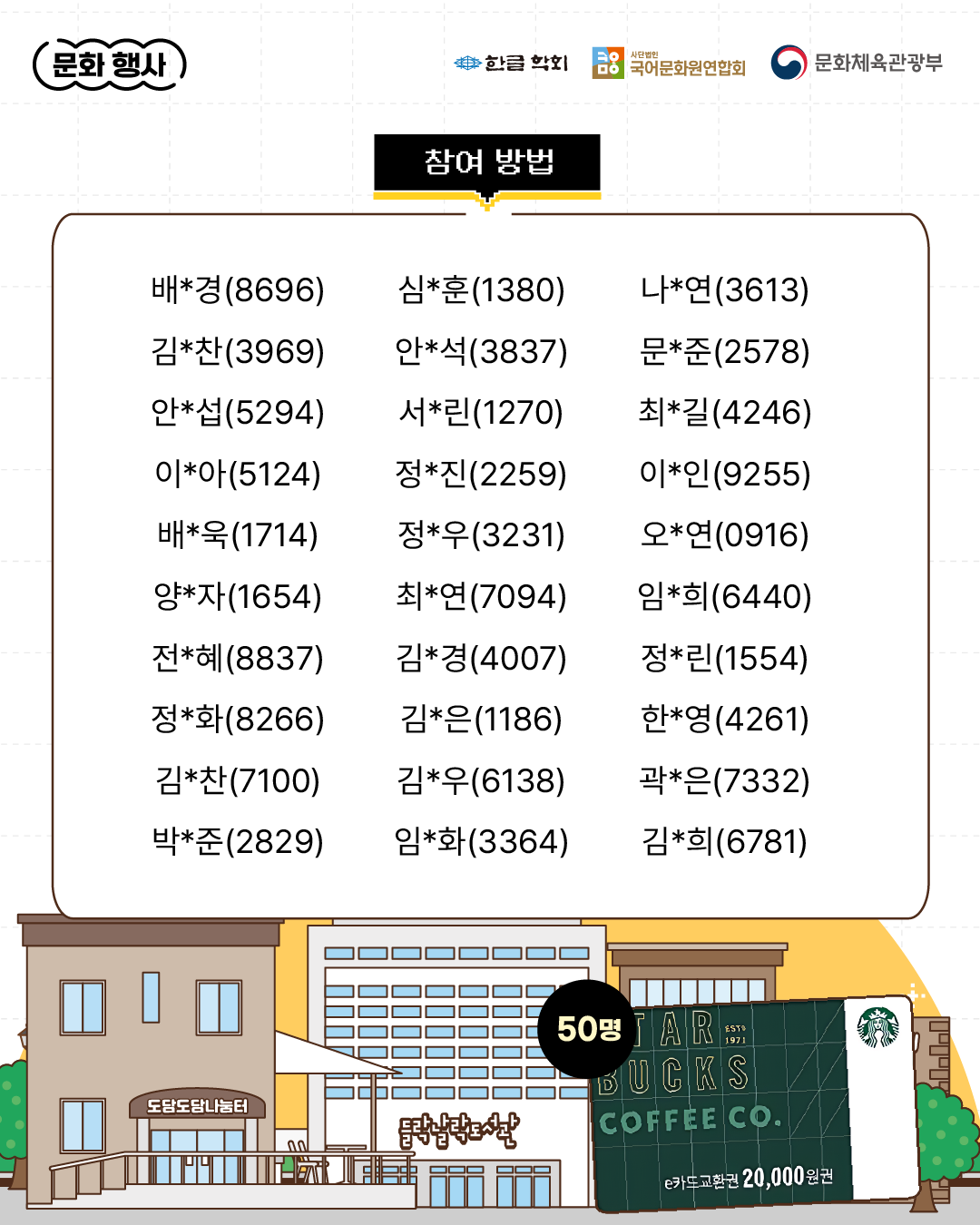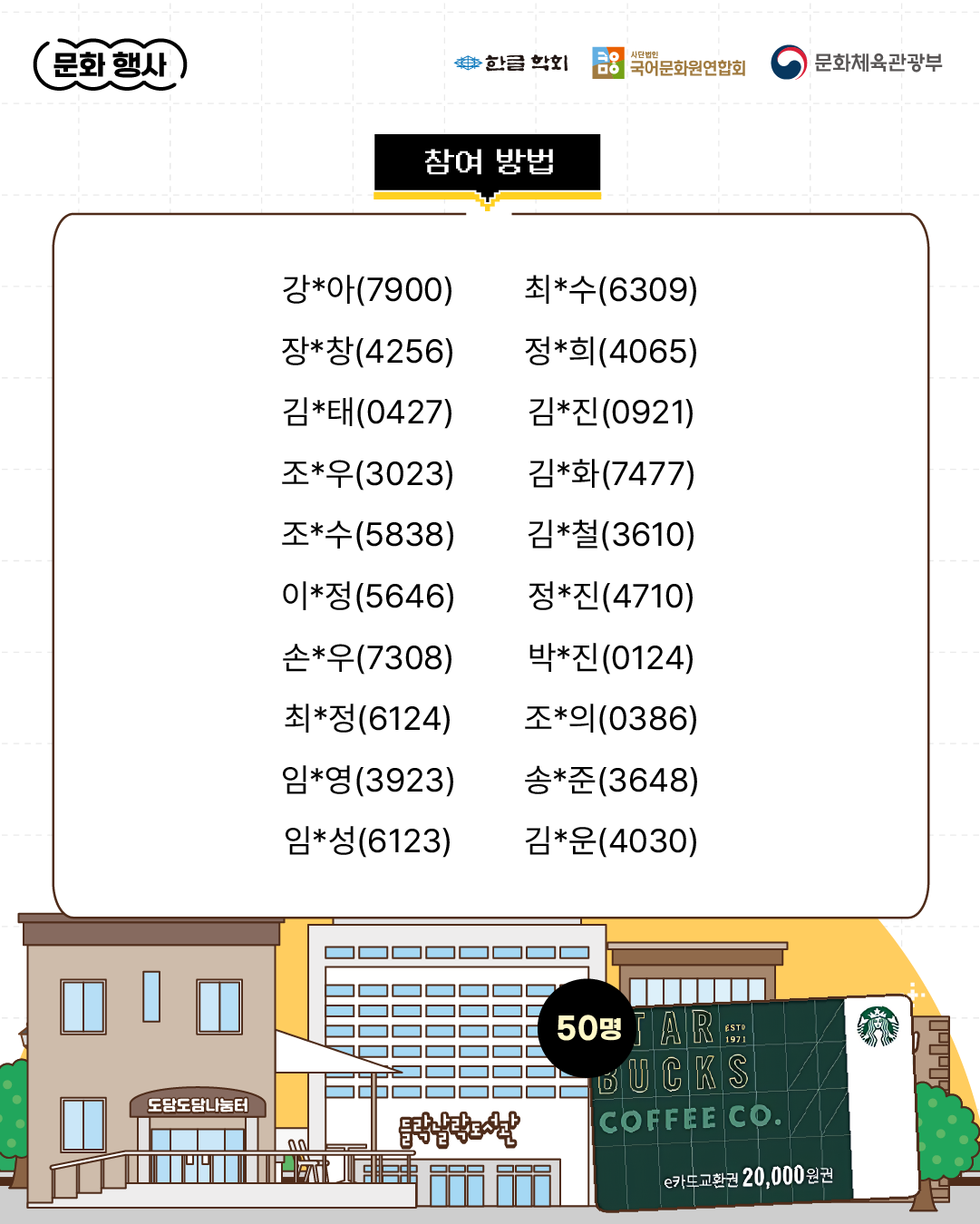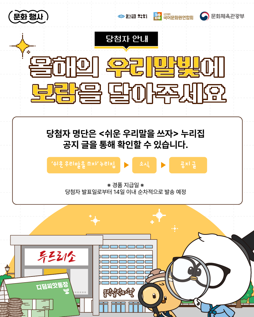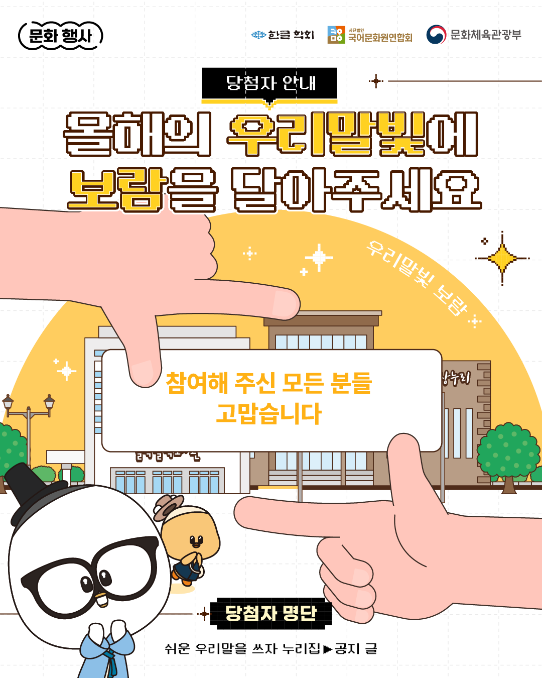 <올해의 우리말빛에 보람을 달아주세요> 문화 행사 당첨자 발표🎁